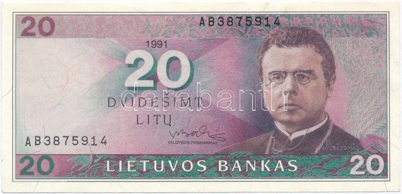 Krause KM#48 https://www.darabanth.com/hu/358-Gyorsarveres/358.0/Numizmatika/Kulfoldi-bankjegyek~2000012/Litvania-1991-20L-TII-Lithuania-1991-20-Litu-CXF-Krause-KM2348~II2054756