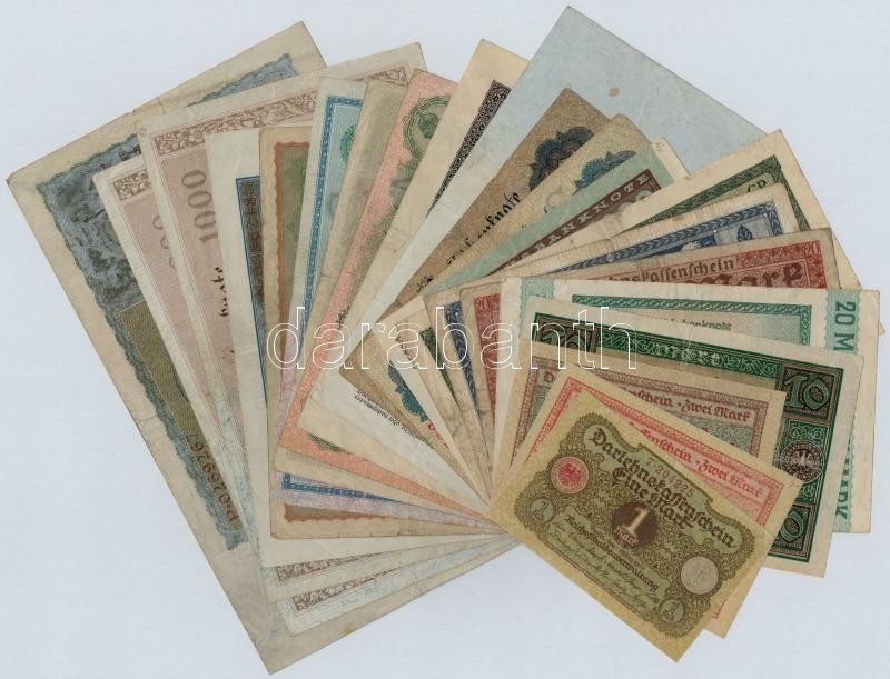 Leírás: Németország / Weimari Köztársaság 1919-1923. 21db-os vegyes bankjegy tétel T:III