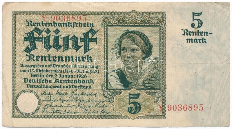 Leírás: Németország / Weimari Köztársaság 1926. 5M 7 jegyű sorszámmal T:III