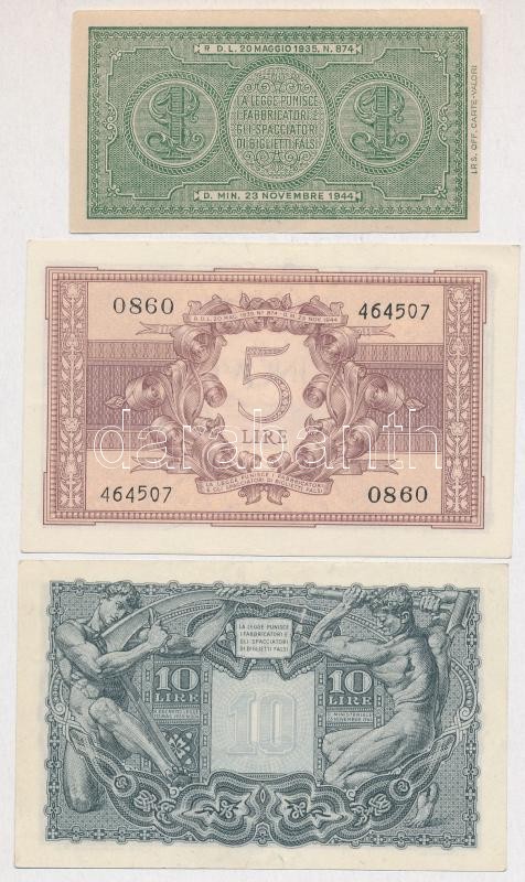 Italy 1944. 1 Lira + 5 Lire + 10... https://www.darabanth.com/hu/358-Gyorsarveres/358.0/Numizmatika/Kulfoldi-bankjegyek~2000012/Olaszorszag-1944-1L-plus-5L-plus-10L-TI--Italy-1944-1-Lira-plus-5-Lire-plus-10-Lire-CAU~II2059022