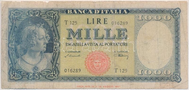 Krause 83 https://www.darabanth.com/hu/358-Gyorsarveres/358.0/Numizmatika/Kulfoldi-bankjegyek~2000012/Olaszorszag-1947-1000L-TIII--Italy-1947-1000-Lire-CVG-Krause-83~II2058967