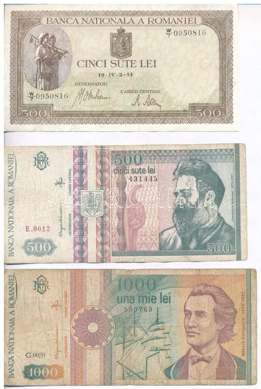Romania 1941-1994. 5 L... https://www.darabanth.com/hu/358-Gyorsarveres/358.0/Numizmatika/Kulfoldi-bankjegyek~2000012/Romania-1941-1994-5L-10000L-9x-TIII-III--Romania-1941-1994-5-Lei-10000-Lei-9x-CF-VG~II2054807