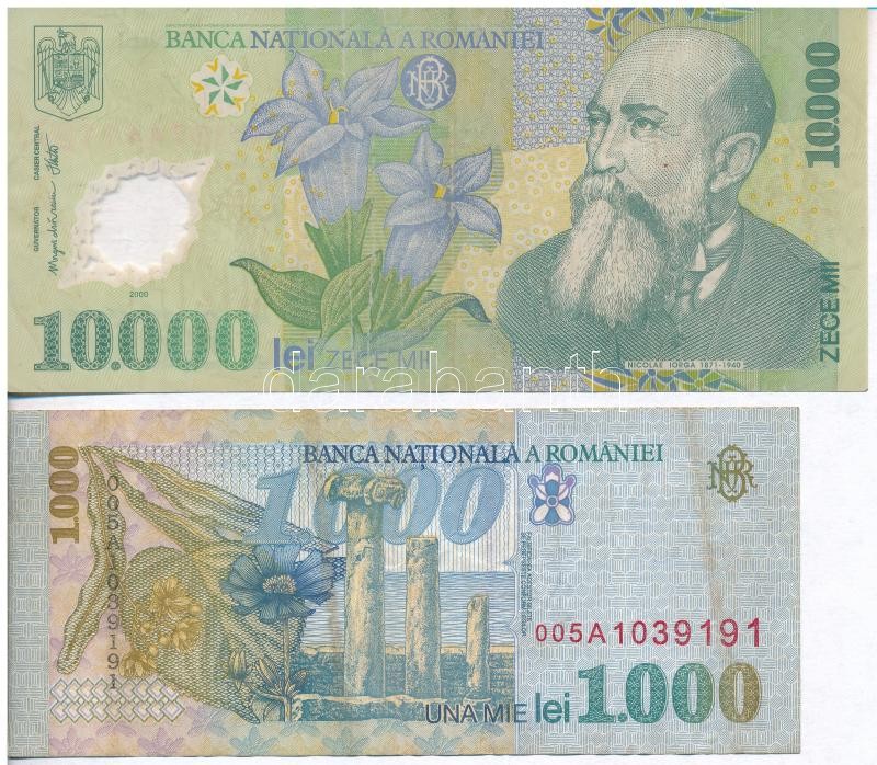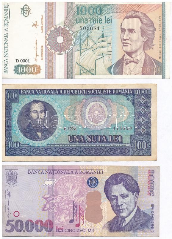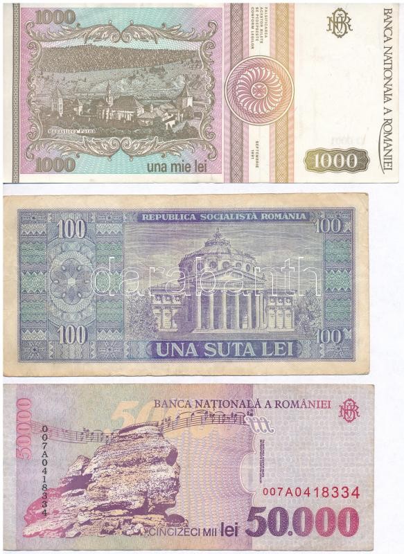 Románia 1966. 100L + 1991. 1000L + 1998. 1000L + 2000. 10.000L + 50.000L T:III