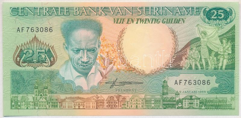 Krause 132.b https://www.darabanth.com/hu/358-Gyorsarveres/358.0/Numizmatika/Kulfoldi-bankjegyek~2000012/Suriname-1988-25G-TI--Suriname-1988-25-Gulden-CUNC--Krause-132b~II2058226