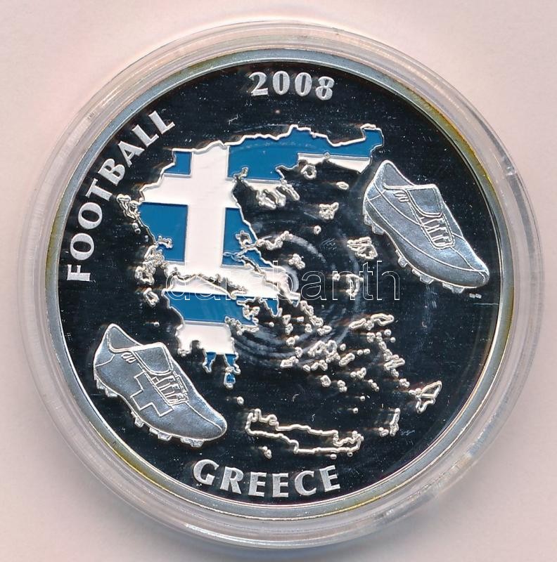 Leírás: 2008. "Futball 2008. Görögország / Svájc - Ausztria" festett, ezüstözött réz emlékérme tanúsítvánnyal (40mm) T:PP small patina