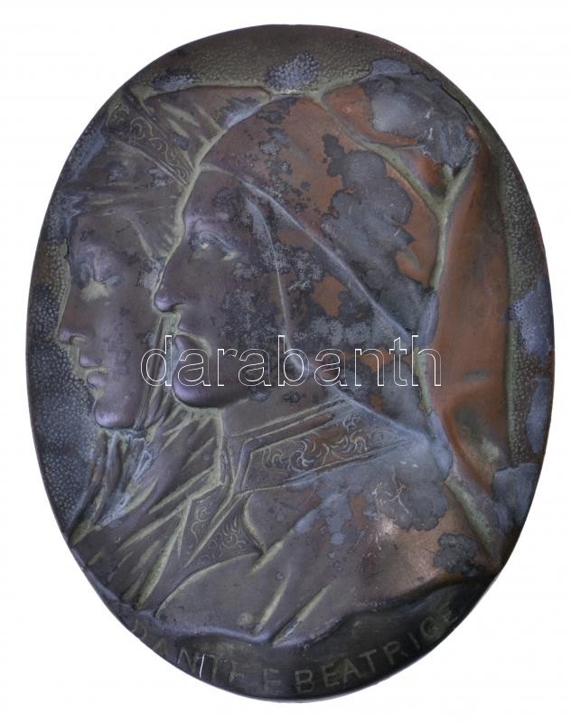 Leírás: DN "Dante e Beatrice" bronzozott Zn plakett, hátlapon akasztóval (138x108mm) T:2 kopott bronzozás