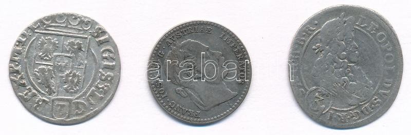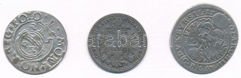 3db klf külföldi ezüstérme, közte Német Államok / Szilézia 1701CB 3kr Ag "I. Lipót" (1,38g); Ausztria 1870. 10kr Ag "Ferenc József" T:2-