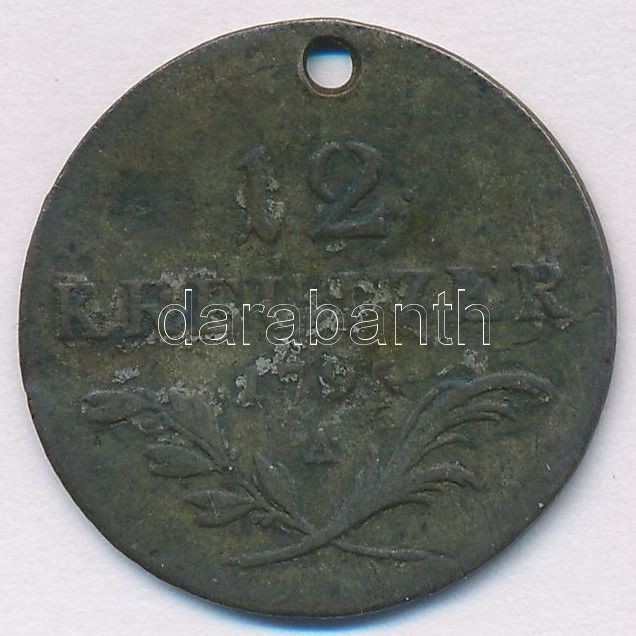 Austria 1795A 12 Kreuzer (4,14... https://www.darabanth.com/hu/358-Gyorsarveres/358.0/Numizmatika/Kulfoldi-fem-es-ezustpenzek~2000013/Ausztria-1795A-12kr-Ag-4-14g-T3-ly-Austria-1795A-12-Kreuzer-4-14g-CF-hole-Krause-KM232137~II2060826