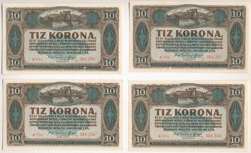 Leírás: 1920. 10K (4x) sorszámkövetők T:I,I-