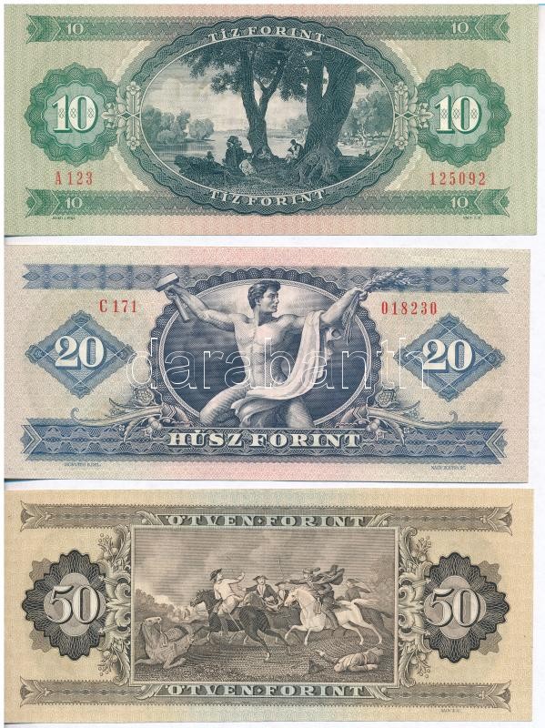 1975. 10Ft "A123 125092" + 20Ft "C171 018230" + 50... https://www.darabanth.com/hu/358-Gyorsarveres/358.0/Numizmatika/Magyar-bankjegyek~2000006/1975-10Ft-A123-125092-plus-20Ft-C171-018230-plus-50Ft-D129-049759-plus-100Ft-B190-156538-plus-500Ft-E3~II2056179