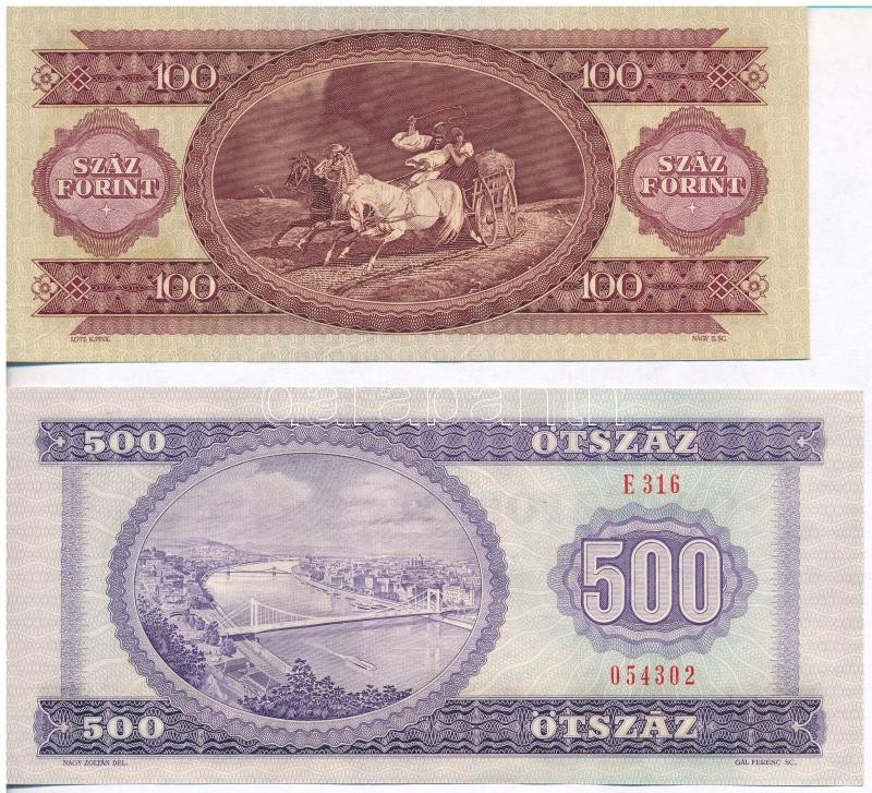 Leírás: 1975. 10Ft "A123 125092" + 20Ft "C171 018230" + 50Ft "D129 049759" + 100Ft "B190 156538" + 500Ft "E316 054302" T:I-II (az 500Ft hajtatlan)