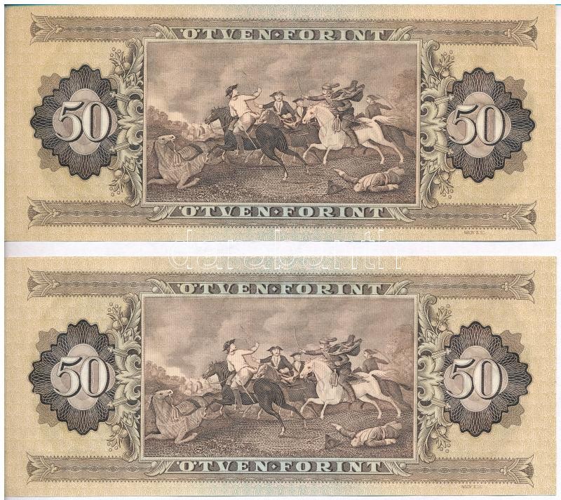 Leírás: 1980. 50Ft (2x) sorszámkövetők "D566 057297 - D566 057298", nyomdai papírránc T:I