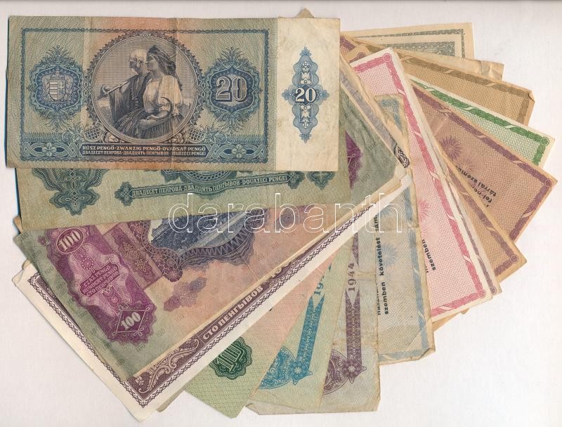 Leírás: 26db-os vegyes magyar korona, pengő és adópengő bankjegy tétel T:III,III-