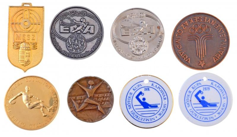Leírás: ~1960-1990. 8db sport témájú díjérem és plakett, közte "Nemzetközi Siótour kupa - Kaposvár-Siófok 1978." T:1-1-