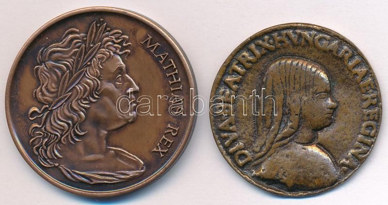 Fritz Mihály (1847-) 1990. "Mathias Rex / MÉE Szeged" Mátyás király halálának 500. évfordulója, Br emlékérem (43mm) + DN "Beatrix" Br emlékérem kópia (38,5mm) T:1,2-