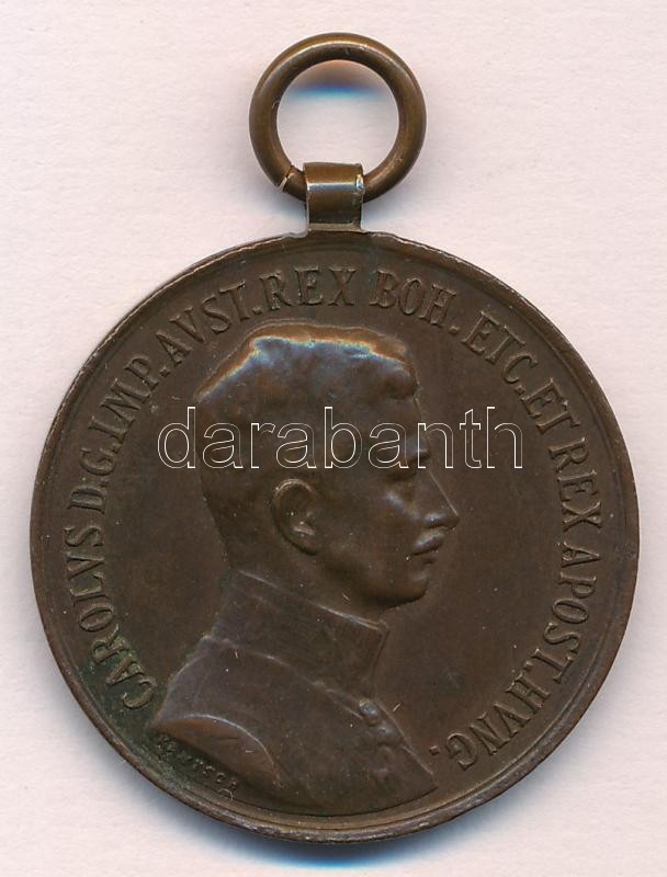 Leírás: 1917. "Károly Bronz Vitézségi Érem" Br kitüntetés mellszalag nélkül. Szign.: Kautsch T:2