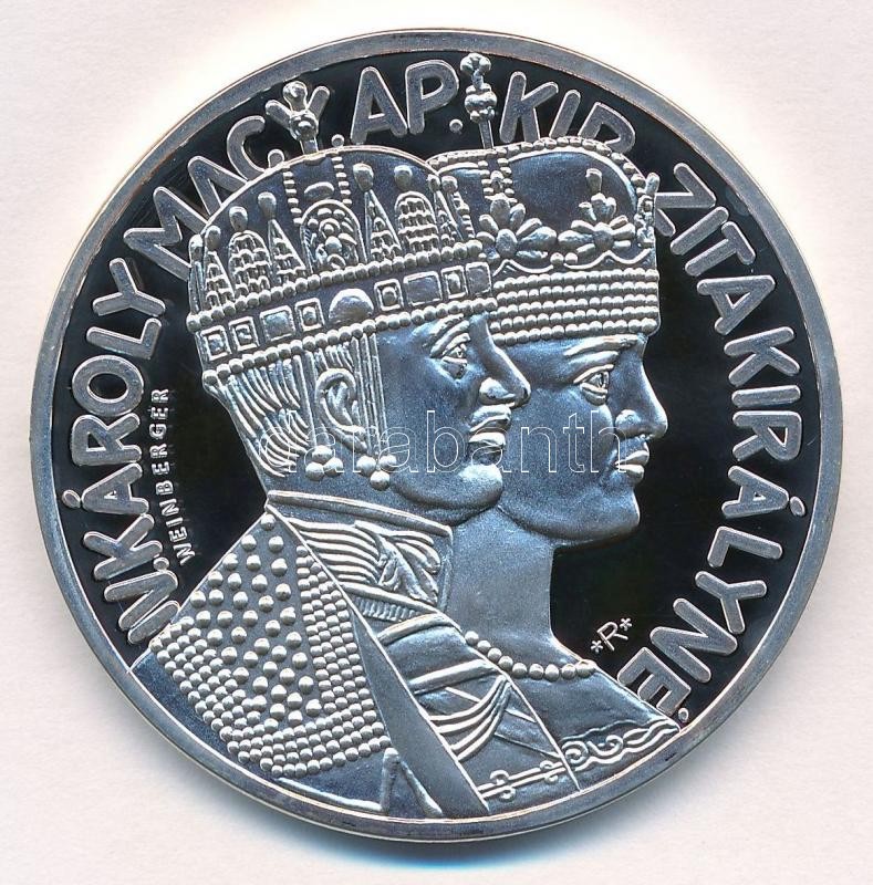 Leírás: 1916. "IV. Károly és Zita királyné" ezüstözött fém "R" jelzésű replika emlékérem (46mm) T:PP