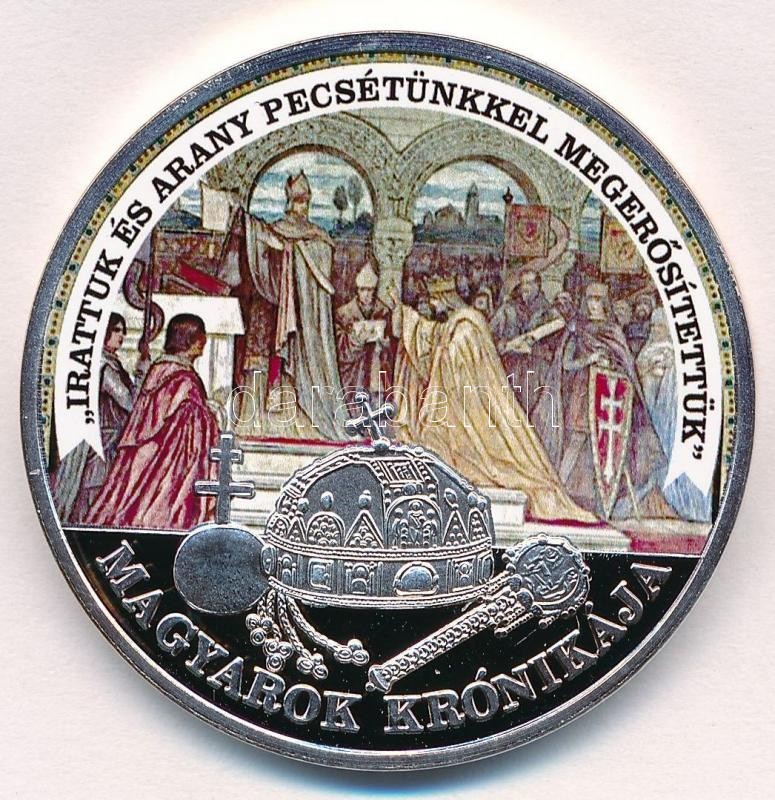 Leírás: DN "Magyarok Krónikája - irattuk és arany pecsétünkkel megerősítettük" ezüstözött, multicolor Cu emlékérem tanúsítvánnyal (42mm) T:PP patina