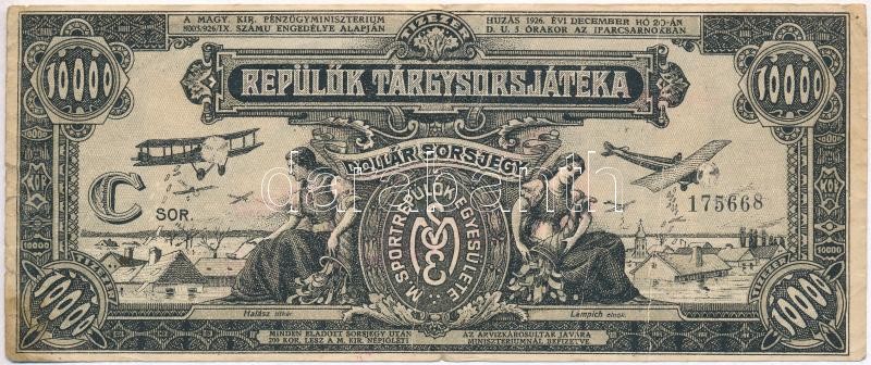 1926. "Magyar Sportrepülők Egyesülete - Repülők Tárgysorsjátéka -... https://www.darabanth.com/hu/358-Gyorsarveres/358.0/Numizmatika/Reszvenyek-es-sorsjegyek~2000004/1926-Magyar-Sportrepulok-Egyesulete-Repulok-Targysorsjateka-Dollar-Sorsjegy-C-soroza~II2056063