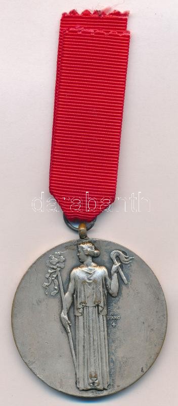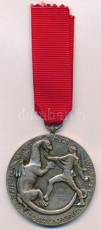 Ispánki József (1906-1992) ~1939. "Magyar Királyi Budapest Székesfőváros Katonai Parancsnokság - Szent György" ezüstözött Br érem nem saját mellszalaggal (50mm) T:2