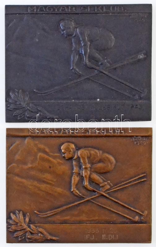 Leírás: Sződy Szilárd (1878-1939) 1929. "Magyar Sí Klub" (2x) Br és hadifém plakettek, mindkettő gravírozva, a Br "LUDVIG" gyártói jelzéssel (57x70mm) T:2