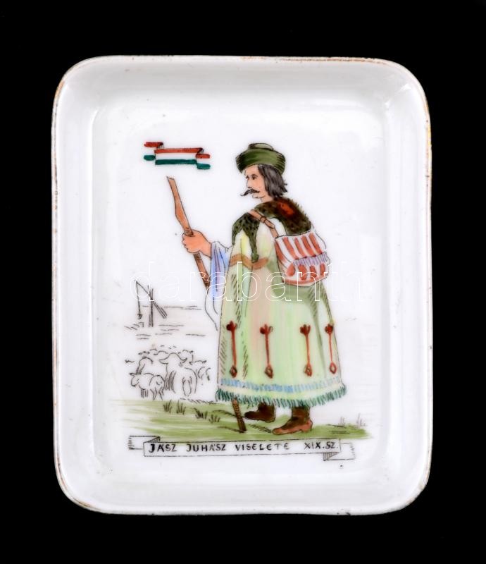 Leírás: Aquincumi porcelán tálka, "Jász juhász viselete XIX sz.", kézzel festett, jelzett, hibátlan, 10x8 cm.
