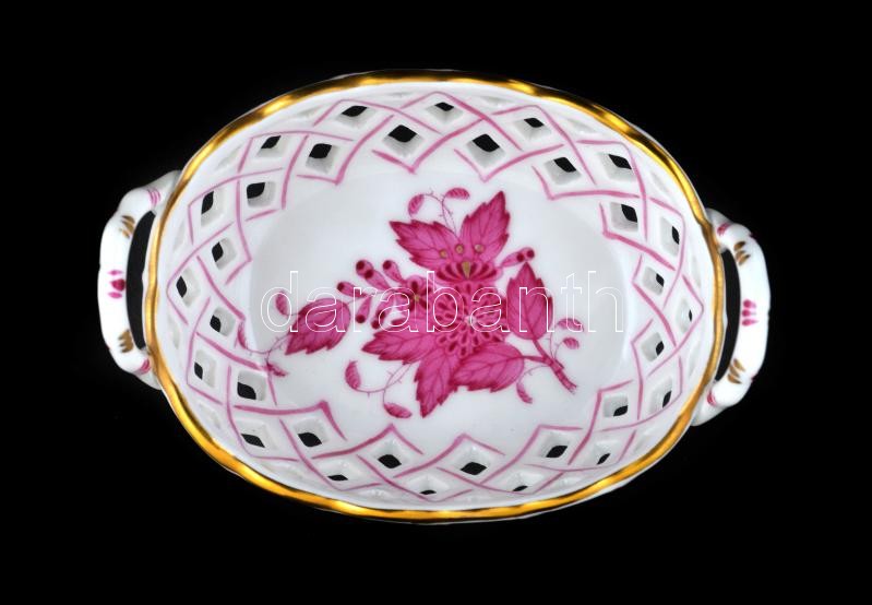 Leírás: Herendi Apponyi mintás kosárka, kézzel festett, jelzett, hibátlan, 8,5×6 cm