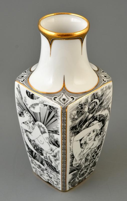 Hollóházi Jurcsák László által tervezett váza, Vénusz születése. Matricás, jelzett, hibátlan m:25 cm / Birth of Venus designed by Laszlo Jurcsák Hollóhaza chinaware vase