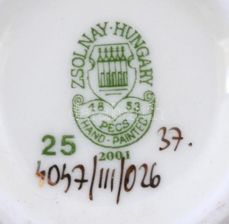 Zsolnay pillangó mintás mini váza, kézzel festett, jelzett, m:7 cm https://www.darabanth.com/hu/358-Gyorsarveres/358.0/Porcelan-keramia-uveg/Porcelan~500007/Zsolnay-pillango-mintas-mini-vaza-kezzel-festett-jelzett-m7-cm~II2060892