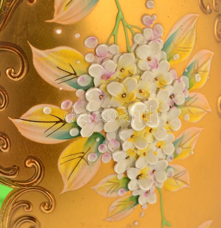 Jelzés nélkül: Nagyméretű, aranyozott, festett üveg díszváza. 42 cm https://www.darabanth.com/hu/358-Gyorsarveres/358.0/Porcelan-keramia-uveg/Uvegtargyak~500008/Jelzes-nelkul-Nagymeretu-aranyozott-festett-uveg-diszvaza-42-cm~II2055645
