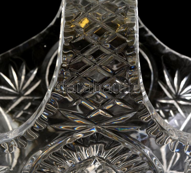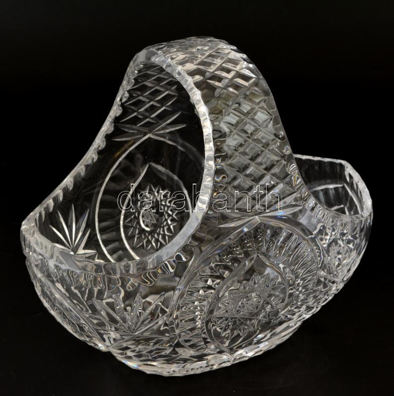 Leírás: Nagyméretű kristály kínáló kosár. Apró lepattanással 22 cm