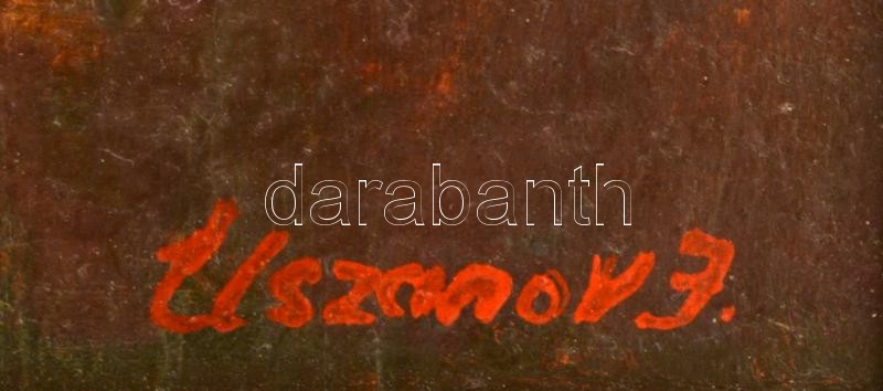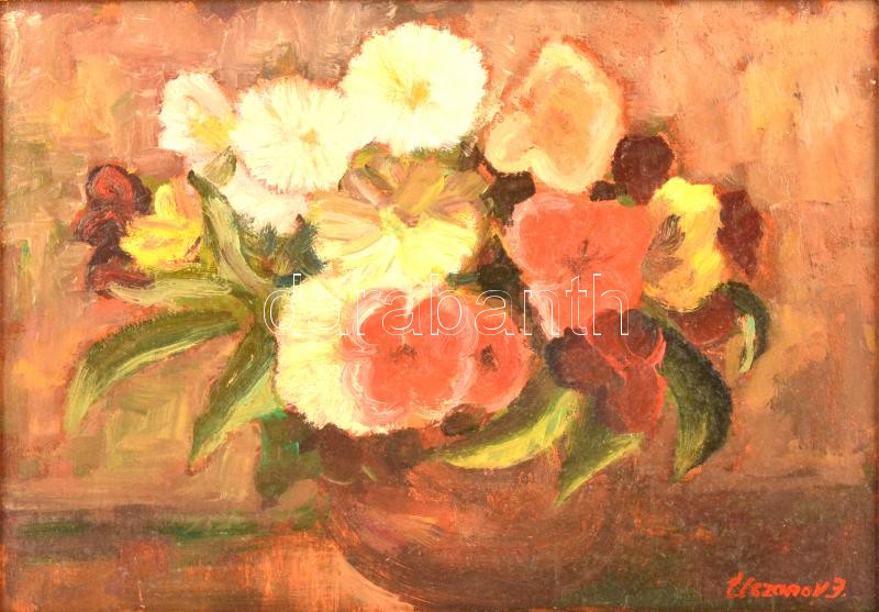 Leírás: Jurij Uszanov (1947-): Virágcsendélet. Olaj, farost, jelzett, keretben, 25×35 cm