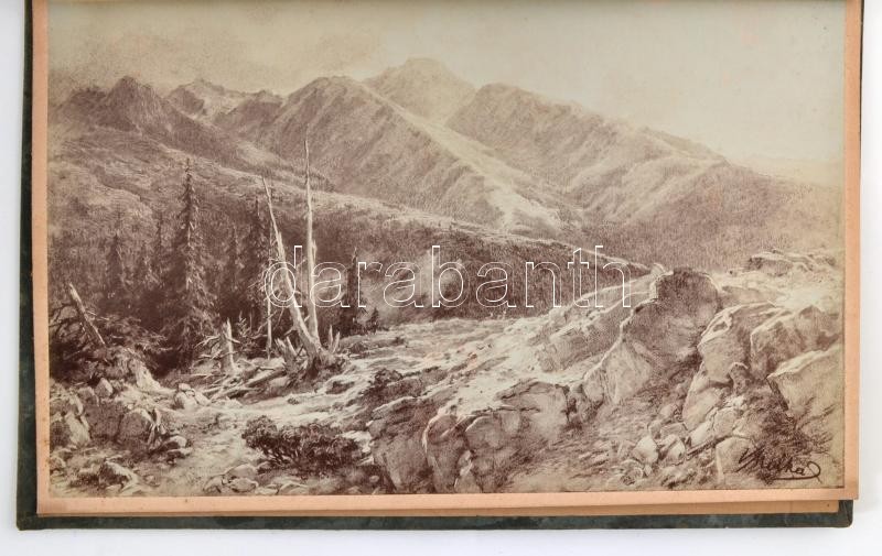 Melka Vince (1834-1911) festőművész a Görgényi-havasokban tartott udvari vadászatokról készült festményeit ábrázoló 8 db nagyméretú karton fénykép feliratozva, házi készítésű albumban
