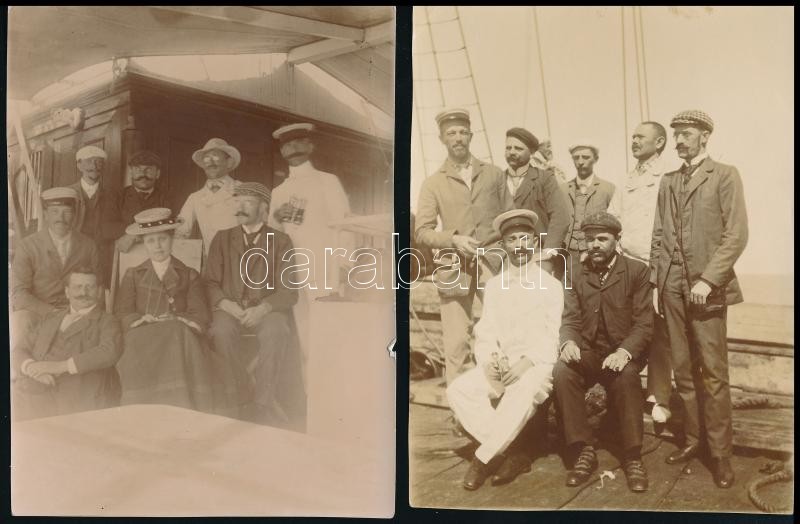 Leírás: cca 1900 "Árpád" hajó utasai Földközi-tengeri utazáson, 2 db fénykép, 11,5x8,5 cm