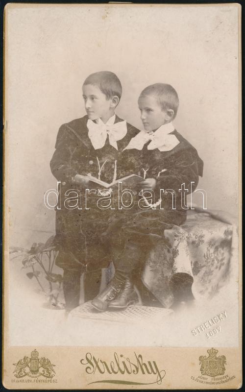 cca 1900 Két kisfiú portréja, keményhátú fotó, Bp., Strelisky műterméb... https://www.darabanth.com/hu/359-Gyorsarveres/359.0/Fotomuveszet/Foto~500021/cca-1900-Ket-kisfiu-portreja-kemenyhatu-foto-Bp-Strelisky-mutermebol-17-5x10-5-cm~II2041673