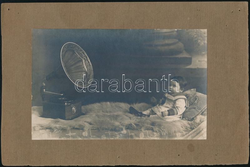 Leírás: cca 1910 Gyermek gramofonnak. Burger Rezső szárazpecséttel jelzett fotója. 17,5x11,5 cm Kartonon