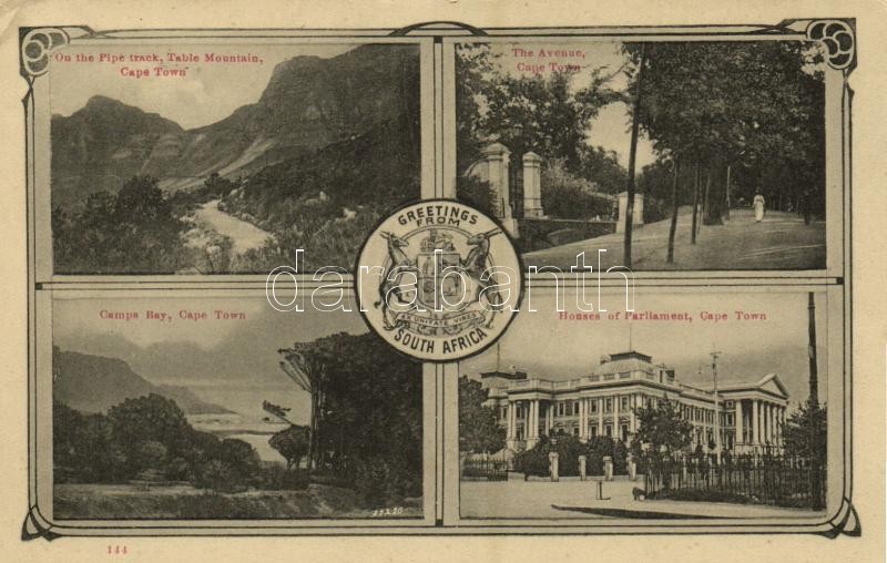 Leírás: 1926 Cape Town, Greetings from South Afrirca, Camps Bay, Houses of Parliament, Avenue, Table Mountains, On the Pipe Track (EK)