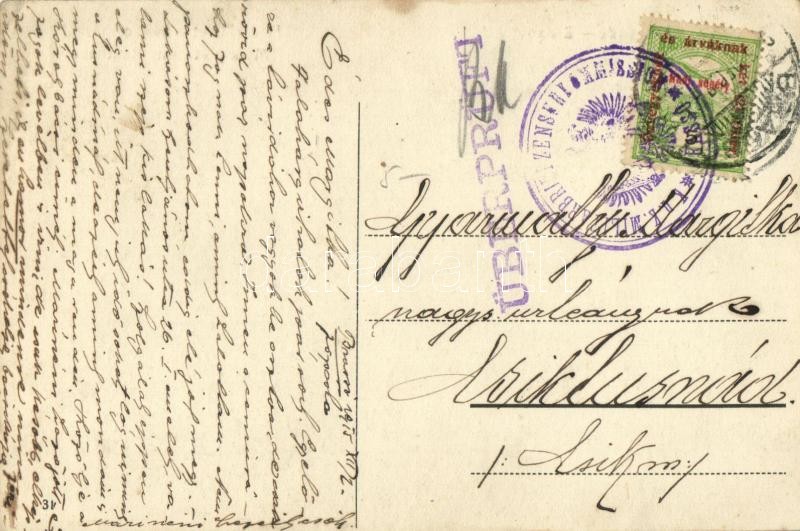 Leírás: 1915 Brassó, Kronstadt, Brasov; Piac, Tanácsháza, Városháza, Ortodox templom, üzletek / market vendors, town hall, orthodox church, shops + "K.u.K. Militär-Briefzensur-Kommission Brassó" (EK)