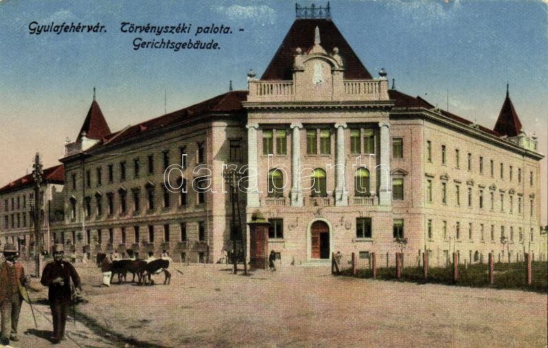 Leírás: 1920 Gyulafehérvár, Karlsburg, Alba Iulia; Törvényszéki palota. Kiadja Weisz Bernát / court palace