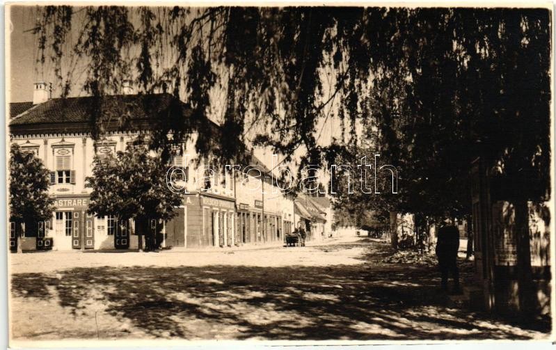 Leírás: Szászsebes, Mühlbach, Sebes; utcakép, Takarékpénztár, Rudolf Keller üzlete / street view with savings bank and shops, photo