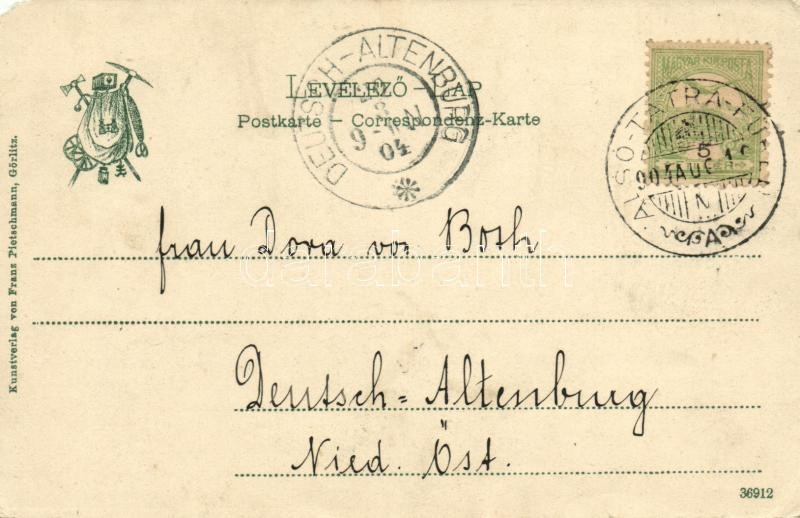 1904 Tátra, Magas Tátra, Vysoké Tatry; Kerbchen u. kl. Visoka-Spitze v. Polnischen Kamme gesehen / Rovátka és a Kis-Viszoka csúcs a Lengyel-nyeregről. Kiadja Franz Pietschmann / Sedlo Prielom, Vychodná Výsoká, Polsky hreben / mountain peaks in the High Tatras (EM)