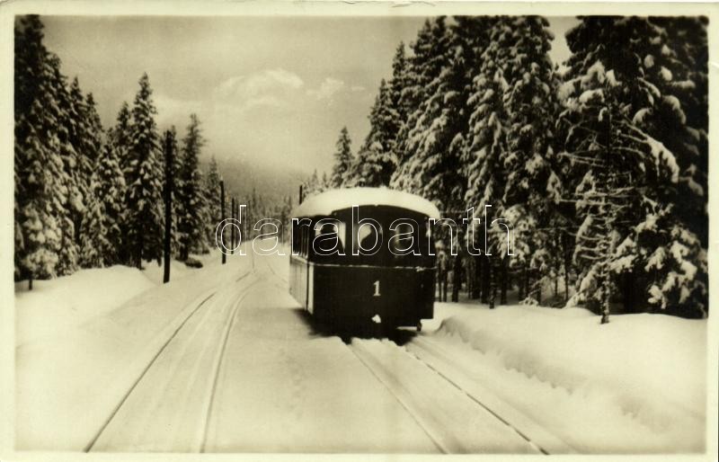 Tátra, Vysoké Tatry; siklóvasút a Tarajkára télen / Lanovka na Hrebien... https://www.darabanth.com/hu/359-Gyorsarveres/359.0/Kepeslapok/Felvidek~1000006/Tatra-Vysoke-Tatry-siklovasut-a-Tarajkara-telen-Lanovka-na-Hrebienok-funicular-in-winter~II2068309