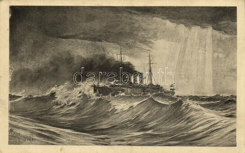 Az Osztrák-Magyar Haditengerészet SMS Sankt Georg páncélos cirkálója / K.u.K. Kriegsmarine SMS Sankt Georg Panzerkreuzer / WWI Austro-Hungarian Navy SMS Sankt Georg armored cruiser. F.W. Schrinner s: Ramberg (wet corner)