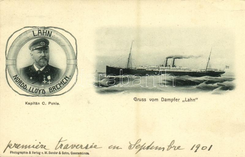 1901 Kapitan C. Pohle, Dampfer "Lahn", Norddeutscher Lloyd B... https://www.darabanth.com/hu/359-Gyorsarveres/359.0/Kepeslapok/Hajo~1000084/1901-Kapitan-C-Pohle-Dampfer-Lahn-Norddeutscher-Lloyd-Bremen-captain-steamship~II2063546