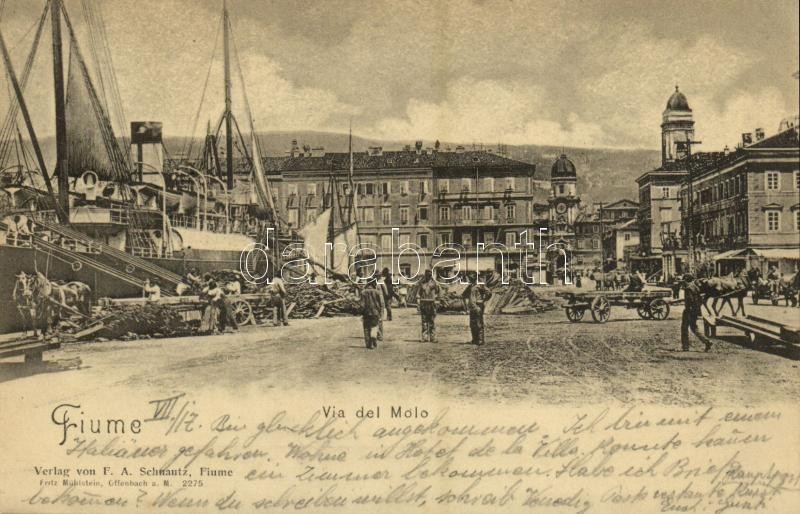 Leírás: 1900 Fiume, Rijeka; Via del Molo / molo, quay, steamship. Verlag v. F. A. Schnautz