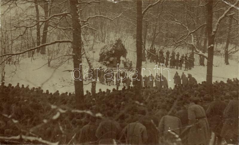 1916 Tábori mise pappal és zenekarral télen / WWI Austro-Hungarian K.u.K. military, field mass with priest and music band in winter. photo + "K.u.K. Feldpostamt 57" (EK)