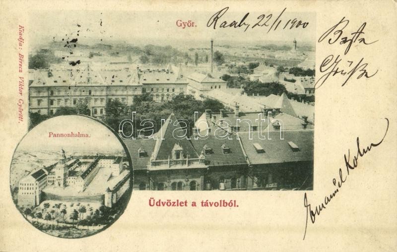 Leírás: 1900 Győr, Győr és Pannonhalma (Győrszentmárton), bencés apátság. Kiadja Berecz Viktor (EK)