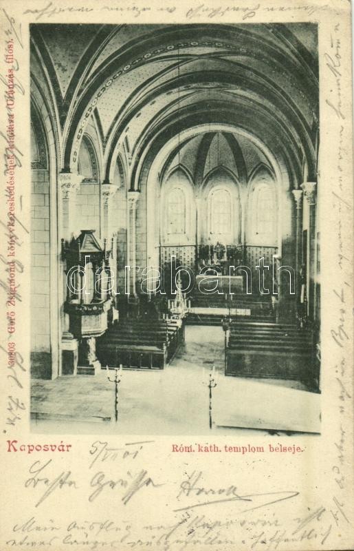 1901 Kaposvár, Római katolikus templom belső. Gerő Zsigmond kiadása https://www.darabanth.com/hu/359-Gyorsarveres/359.0/Kepeslapok/Magyarorszag~1000004/1901-Kaposvar-Romai-katolikus-templom-belso-Gero-Zsigmond-kiadasa~II2063336