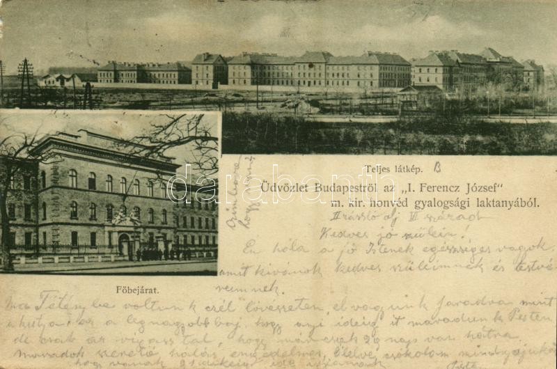 1903 Budapest IX. I. Ferenc József m. kir. honvéd gyalogsági laktanya,... https://www.darabanth.com/hu/359-Gyorsarveres/359.0/Kepeslapok/Magyarorszag~1000004/1903-Budapest-IX-I-Ferenc-Jozsef-m-kir-honved-gyalogsagi-laktanya-latkep-fobejarat-Ul~II2067610