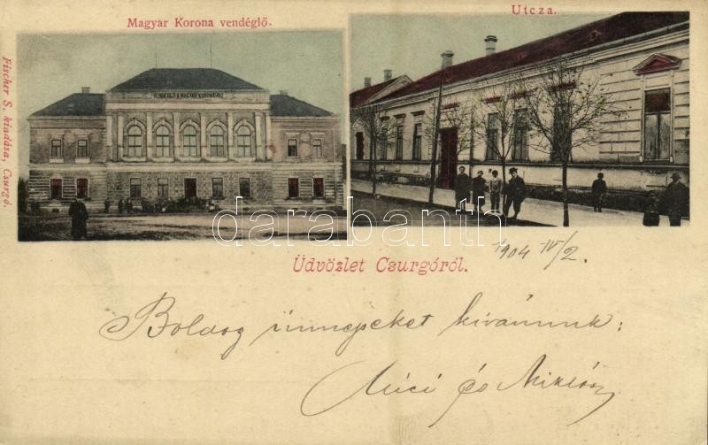 1904 Csurgó, Magyar Korona vendéglő, utca. Fischer S. kiadása https://www.darabanth.com/hu/359-Gyorsarveres/359.0/Kepeslapok/Magyarorszag~1000004/1904-Csurgo-Magyar-Korona-vendeglo-utca-Fischer-S-kiadasa~II2066432